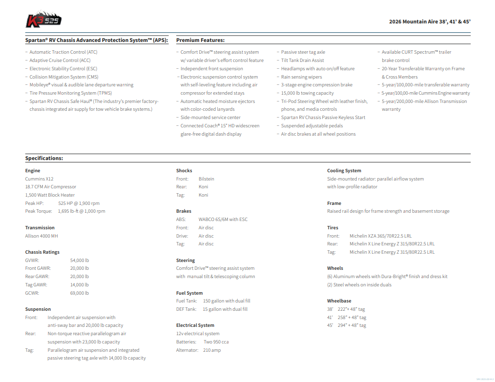 2025 MOUNTAIN AIRE 38', 41' & 45’